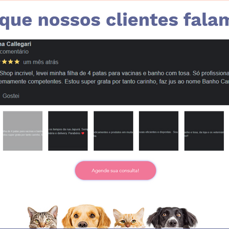 O projeto consistiu na criação de um novo site para o petshop "Banho Carinhoso" como parte do processo de rebranding da empresa. O novo site reflete a evolução do petshop ao longo de seus 19 anos de história, destacando a qualidade, o carinho e a inovação nos serviços oferecidos para atender às necessidades dos pets e seus tutores.